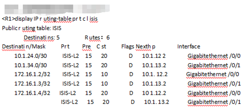 B.R1的IP路由表中由IS-IS产生的路由条目有6条