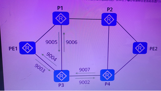 441.某网络所有路由器开启基于0SPF的SR-MPLS TE功能,如图所示为邻接标签分配组网图,其中以下哪些邻接标签是由路由器P3分配的?